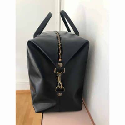 Weekender aus Rindsleder. Enthält Innenfutter mit inklusive zwei Reissverschlussinnentaschen. Auf der Aussenseite jeweils eine kleine Reissverschlusstasche, optimal um Pass und Telefon zu verstauen.